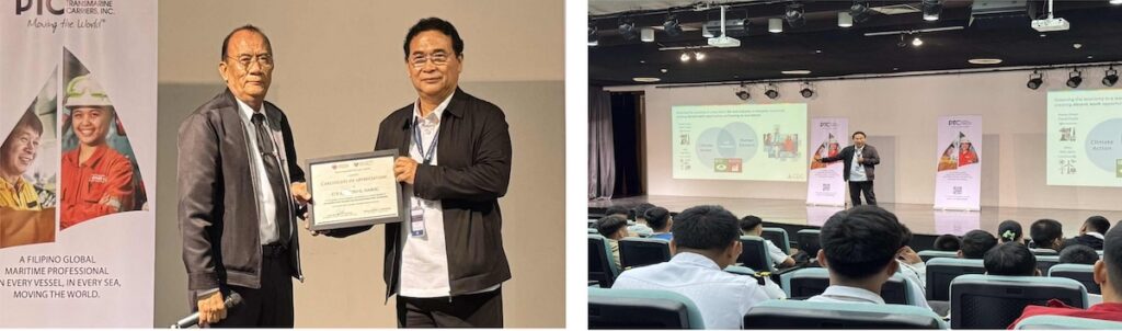 On July 14, 2025, the Talent Acquisition group presented the PTC Masterclass Series at Mapua Malayan Colleges Laguna. This session, attended by nearly a hundred 3rd Year deck and engine cadets, focused on the pivotal topic of “Maritime Just Transition and Decarbonization 2050,” conducted by Chief Engineer Alfredo Haboc, PTCI Senior Adviser for Shipping Business Education & PHILCAMSAT QA and Program Director.