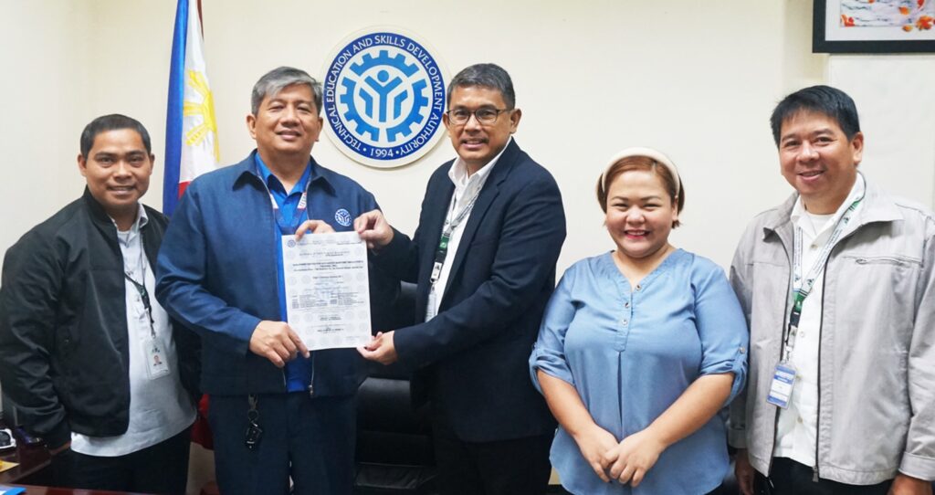 PHILCAMSAT is proud to announce that it has formally been certified by the Technical Education and Skills Development Authority (TESDA) after migrating to the new curriculum of the Ships’ Catering Services NC-I training program. The Technical-Vocational Educational and Training (TVET) Certificate was formally received by Capt. Pol Haboc, Head of PHILCAMSAT and the MAST, from TESDA District Director Rizal Bautista at the TESDA Central Office in Taguig City last August 3.