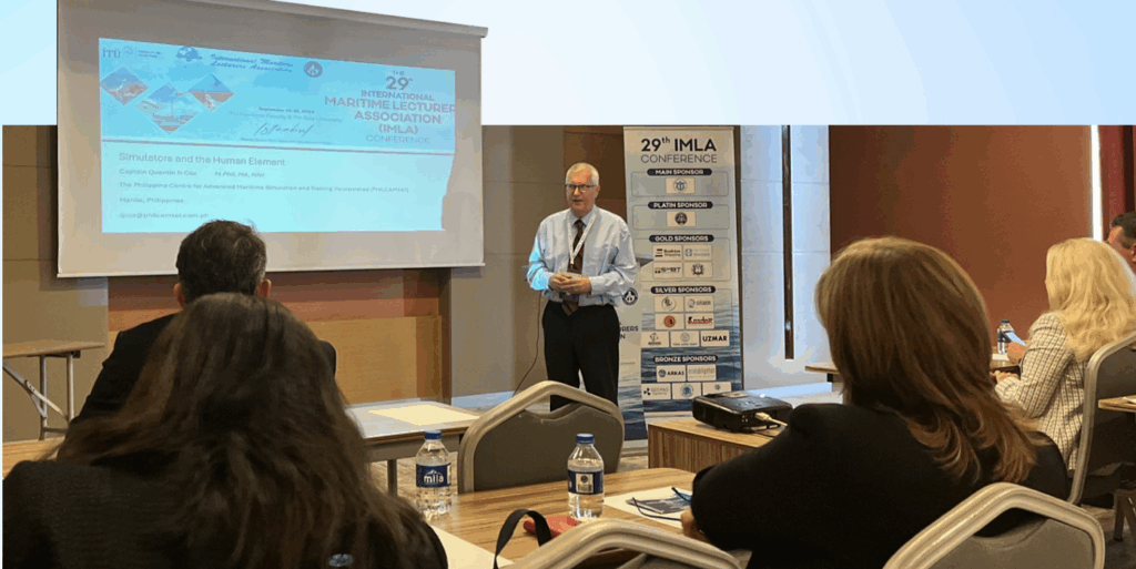 PHILCAMSAT instructor Capt. Quentin Cox recently presented his paper, “Simulators and the Human Element,” at the 29th International Maritime Lecturers Association (IMLA) Conference held on September 26, 2024, at the Green Park Hotel and Convention Center in Istanbul. His presentation focused on the importance of not separating the human element from advancements in maritime technology, especially as the use of simulators in training and assessment becomes more prevalent due to innovations and remote operations, a shift accelerated by the Covid-19 pandemic.